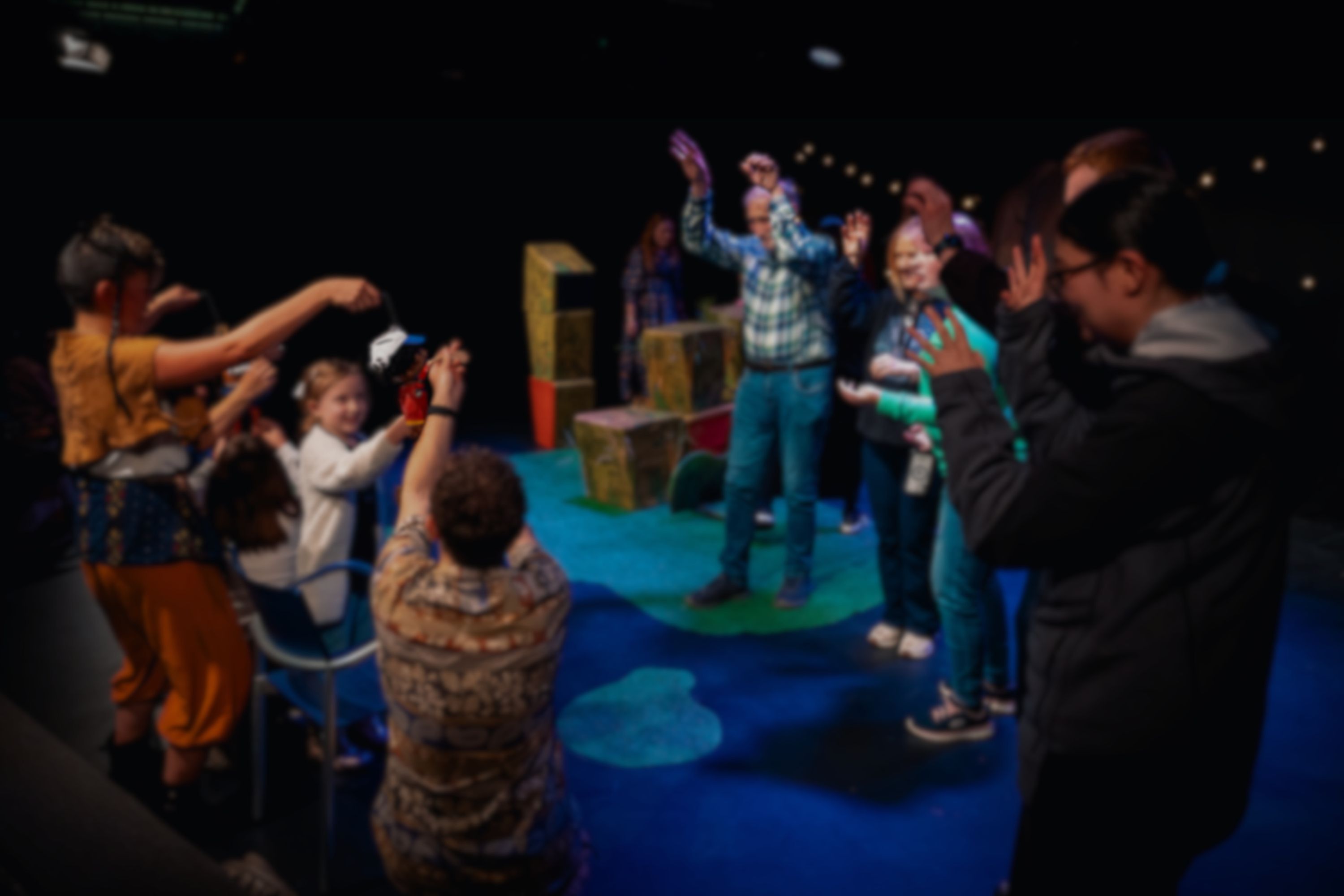 Cracking Slate creates participatory shows for 6 to 11 year olds, which we tour to theatres, libraries and schools. We make joyful storytelling experiences that build confidence, creativity and collaboration